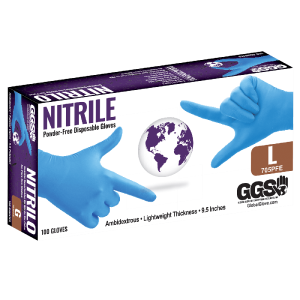 GGS 705PFE – Nitrile, Powder-Free, Industrial-Grade, Lightweight, Blue, 3.5-Mil, Textured Fingertips, 9.5-Inch Disposable Gloves – CASE