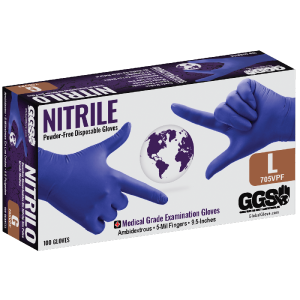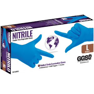 GGS 705PF – Nitrile, Powder-Free, Medical-Grade, Blue, 5-Mil, Textured Fingertips, 9.5-Inch Disposable Examination Gloves – PER BOX