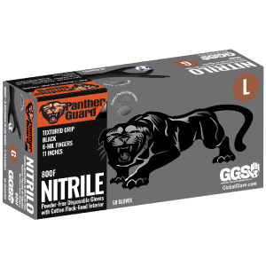 GGS 800F – Industrial Grade Disposable Gloves, Powder Free, Black Nitrile 8-Mil w/ Textured Finish, Cotton Flock Lined, Ambidextrous, FDA Compliant – CASE