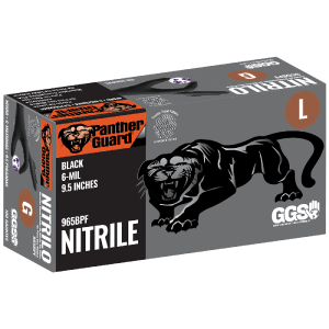 GGS 965BPF – Heavyweight Nitrile, Powder-Free, Industrial-Grade, Black, 6-Mil, Tractor Tread Pattern, 9.5-Inch Disposable Gloves – CASE