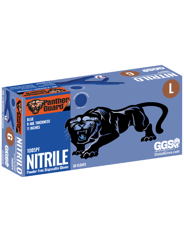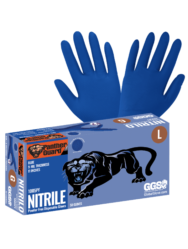 GGS 1005PF – Industrial Grade Disposable Gloves, Powder Free, Blue Nitrile 9-Mil w/ Raised Micro-Diamond Pattern, Cotton Flock Lined, Ambidextrous, FDA Compliant – CASE