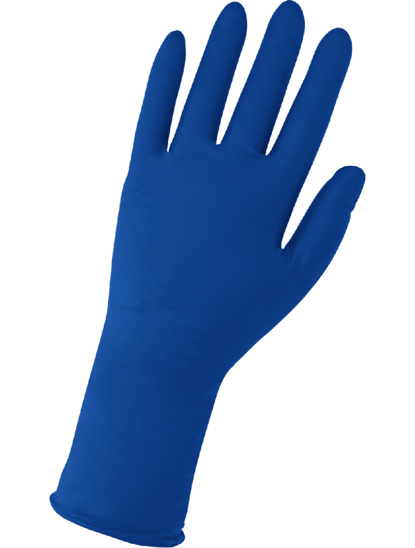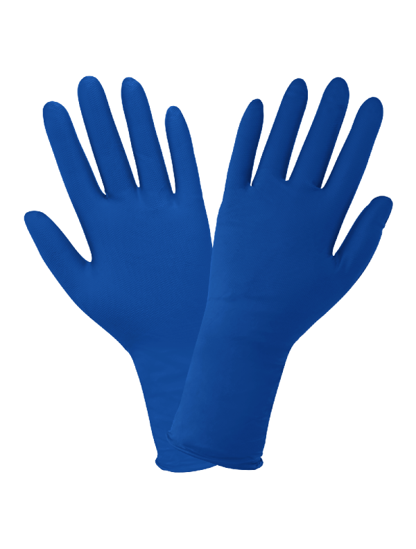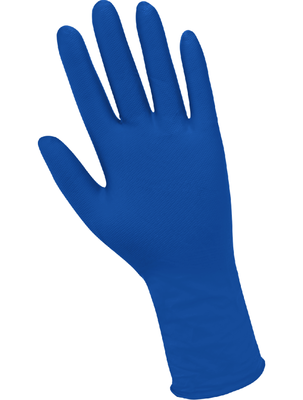 - 100% powder-free heavyweight blue nitrile, not made with natural rubber latex