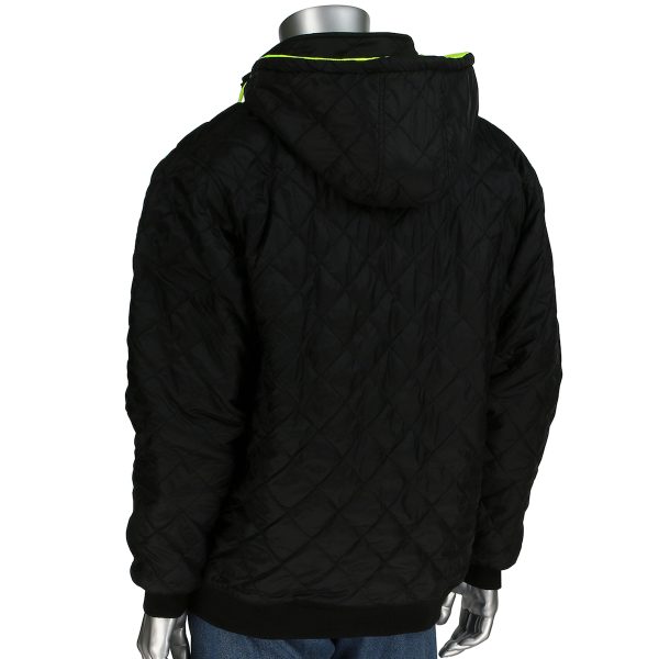 PIP Class 3 – Reversible Full Zip Hooded Sweatshirt w/ Black Bottom – Safety Green – 323-1400S