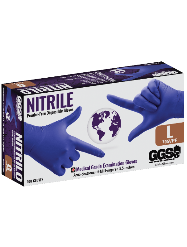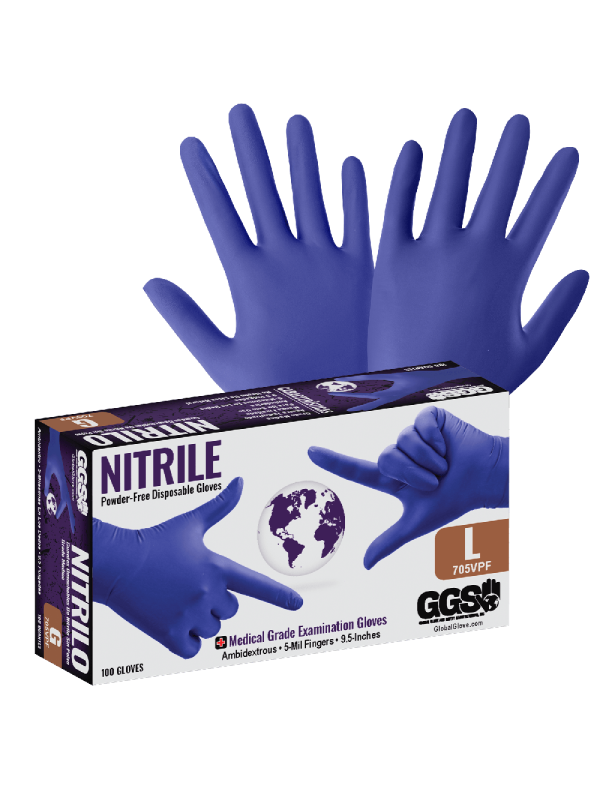 GGS 705VPF – Medical Grade Disposable Gloves – Powder Free, Violet Nitrile 5-Mil, Textured Fingers, Ambidexterous – FDA Compliant – CASE