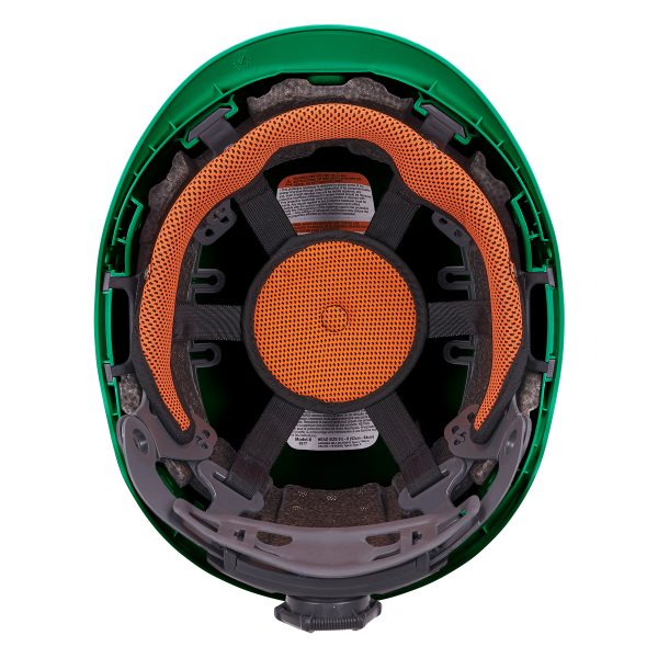 This safety helmet fits hat sizes 6.5 – 8 (21in – 25 in / 53cm – 63.5cm). Customize the size with the easy-to-adjust 27-point premium ratcheting suspension. Simply turn the one-handed adjustment knob to tighten or loosen the fit without having to take the helmet off. Built with weight distribution in mind, this safety helmet has a snug and balanced fit. With an adjustable chin strap (included), the helmet meets EN12492 retention system design, strength and effectiveness clauses 4.13, 4.2.3 and 4.2.4 to secure the helmet to the head and ensures it does not dislodge if the worker falls or is impacted by another object