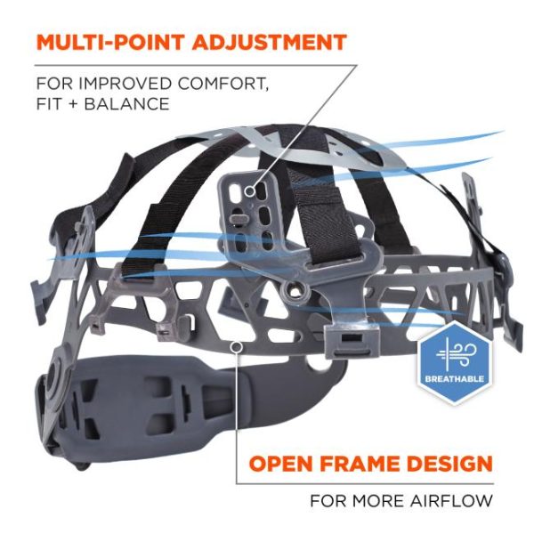 - BREATHABLE – Adjustable venting and flexible open frame with 6-point suspension improves air circulation