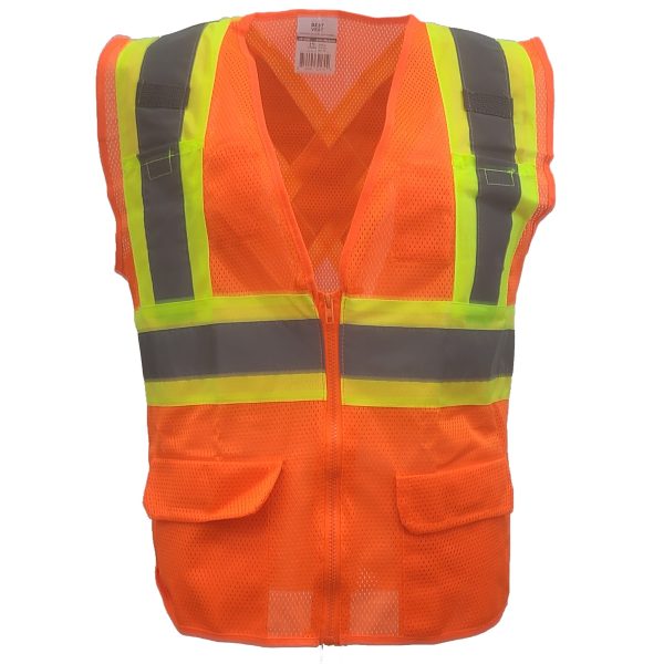 Best Vest – Class 2 DOT Striping Mesh Vest, X Back – Safety Orange – JS1106X