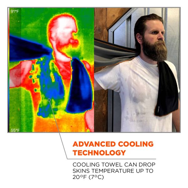 The Chill Its® 6602MF Microfiber Cooling towel is made with a soft and absorbent material that is easy to activate and comfortable to wear all day long for both cooling relief and UV protection. Made with UPF 50 protection, the microfiber material Is chemical free and stays soft and flexible, wet or dry. Designed to create a feeling colder than ambient air temperature and absorb and hold more water than other cooling towels on the market for a longer-lasting cooling. This neck cooling wrap can be used for hours or for quick relief and is completely reusable, just re-wet to activate.