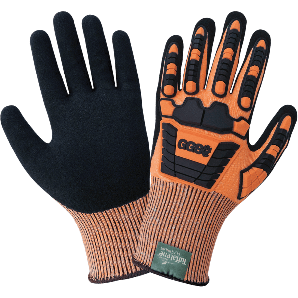 This lightweight seamless glove is an outstanding cut and impact resistant option with its high-visibility orange 15-gauge Tuffalene® Platinum shell. The Tuffalene® Platinum shell is free from glass fibers or metal enhancements to achieve this level of cut protection. Tuffalene® Platinum takes an innovative approach to achieve a higher standard of comfort, protection, and durability. This uniquely crafted material is cooler and provides a more comfortable user experience while also retaining a puncture resistance comparable to enhanced fibers. Gloves made with Tuffalene® Platinum last longer than enhanced gloves due to the inherent abrasion resistance of the fiber construction. Because Tuffalene® Platinum gloves are constructed without metal or glass fibers, particles of these fibers do not contaminate other materials during handling. The gloves feature a black Xtreme Foam Technology nitrile-coated palm and touchscreen compatible fingertips. The knit wrist provides a comfortable, secure fit.
