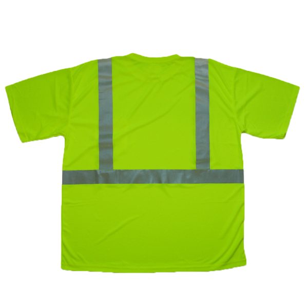 Forester® Class 2 Hi-Vis Tshirt. Meets ANSI/ISEA 107-2015 Class 2 Standards. 100% Polyester makes this shirt more comfortable and wicks away moisture. Breast pocket. Machine washable.