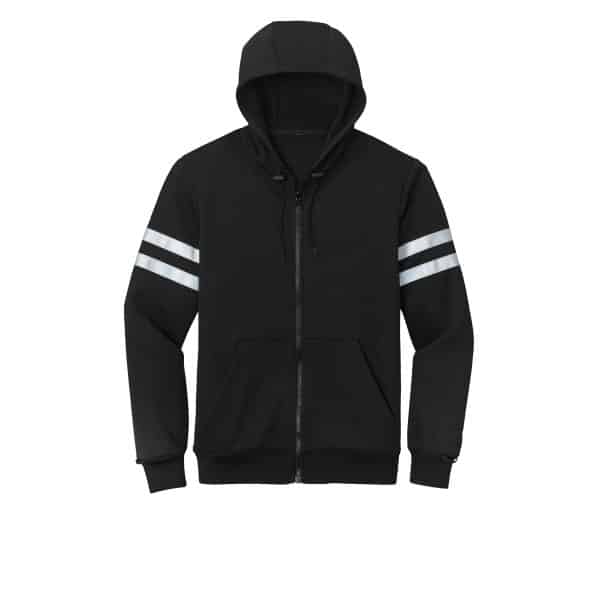 - Non-ANSI inner smooth-faced fleece hoodie features a durable, reflective tape at upper sleeves, molded center front zippered closure, rib knit cuffs and hem and taped neck. Toggles at hood.