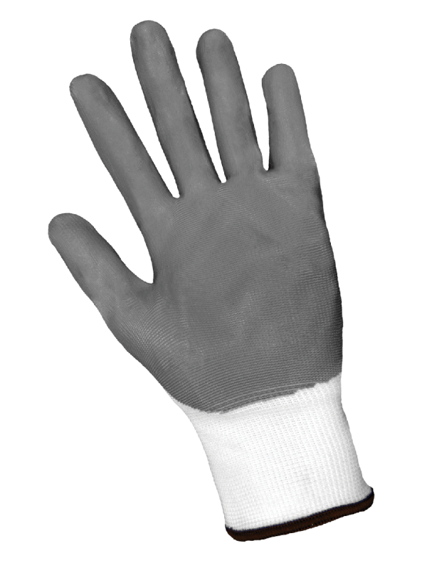 These economical, ultra-light gloves feature a gray nitrile palm dip on a white 13-gauge seamless liner and include a knit wrist. They provide excellent fit, dexterity, and grip.