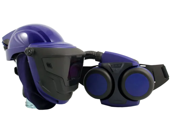 PAPR kit – includes SR 500 fan unit, SR 580 hard hat, SR 584 welding shield, passive welding lens shade 10, breathing hose, battery, battery charger, belt, flow meter, filter covers and 2 each HE particulate filters. APF 1,000.