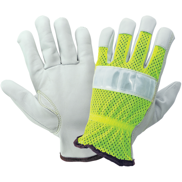 GGS 3100GHV – Hi-Vis Mesh Back Premium Goatskin Leather Palm Drivers Style Gloves