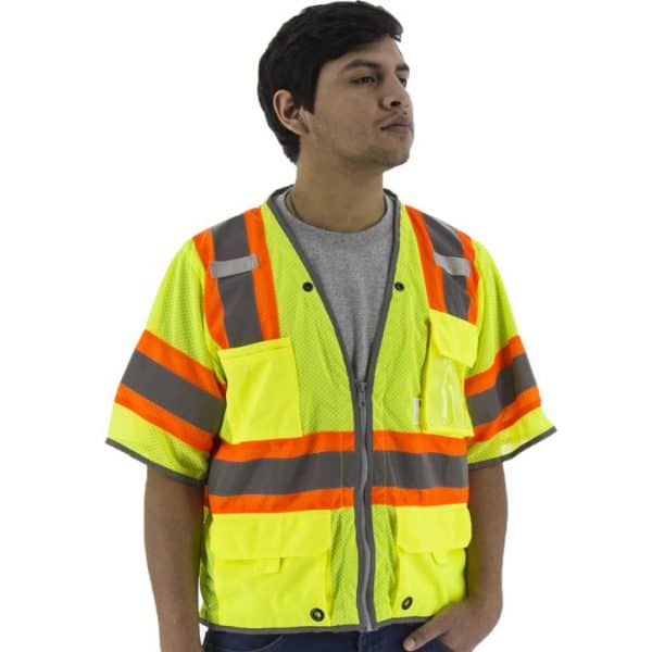 Best Vest – Class 3 Premium Contrast Striping Surveyor Mesh Vest, Zippered, 6 Pockets – JS1135