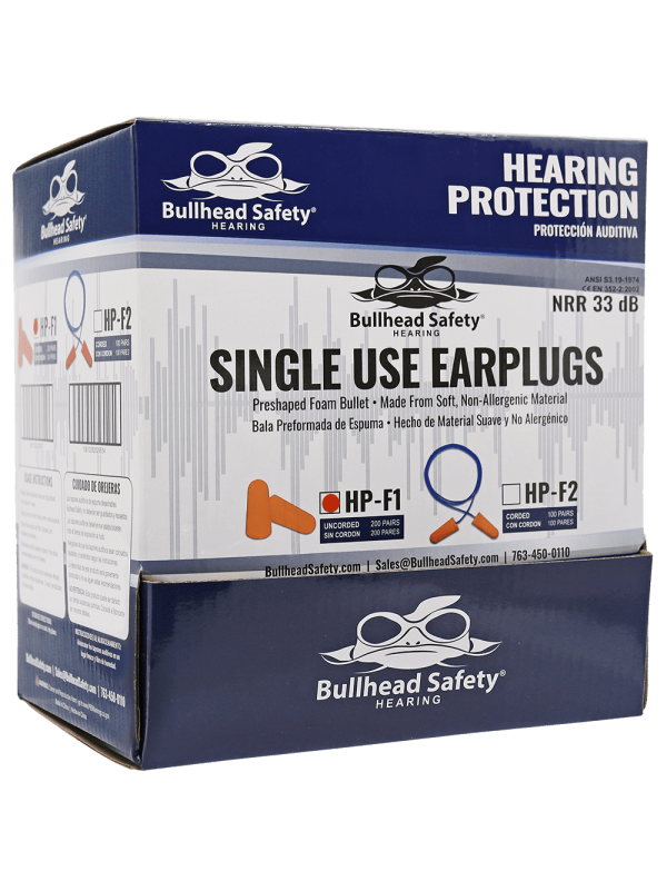 Bullhead Safety® Hearing Protection Uncorded Polyurethane Foam NRR 33 dB Earplugs – HP-F1