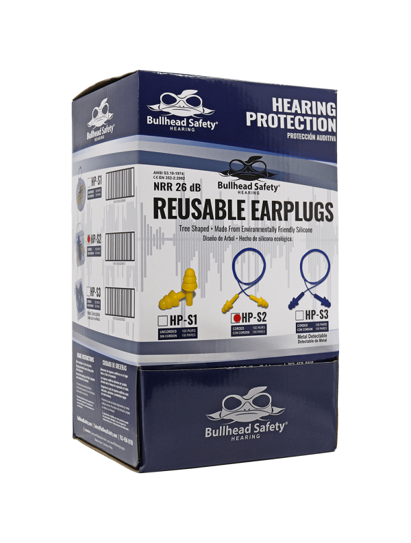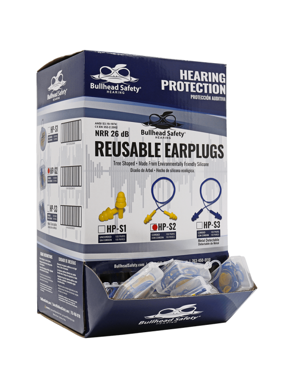 Bullhead Safety Reusable Silicone NRR 26 dB Earplugs – Corded – HP-S2