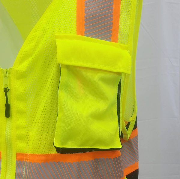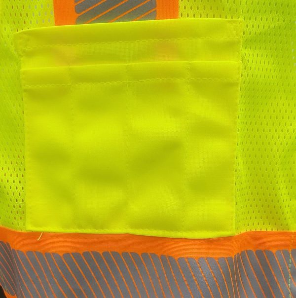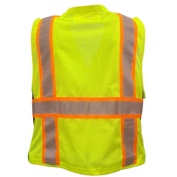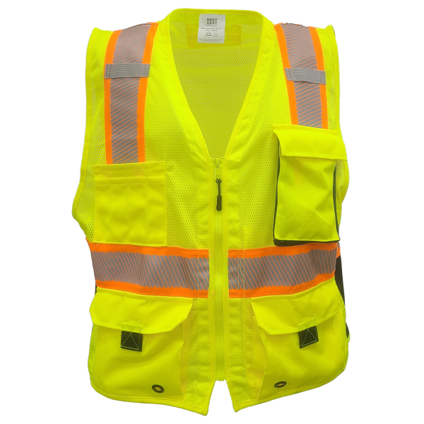 SALEBest Vest – Class 2, Contrast Surveyor Mesh Vest, Zippered, i-Pad Pocket, Split Striping – Safety Green – JS1167