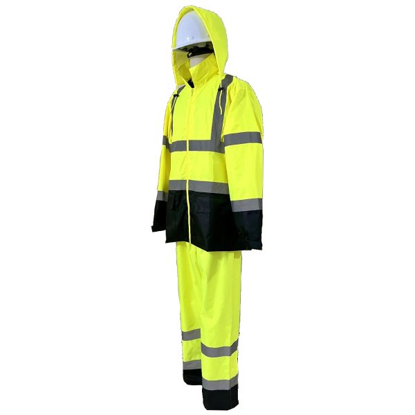 Wickmaster – Class 3 Premium Black Bottom Rain Suit – Safety Green – JS5500