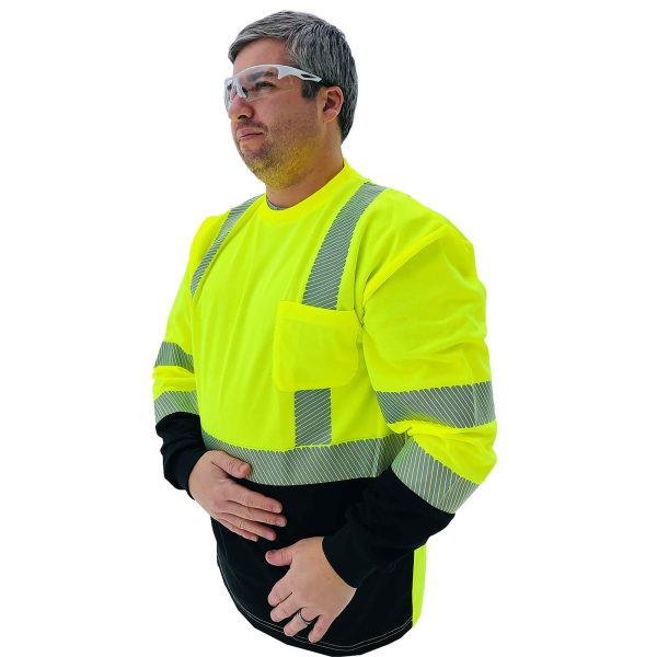 Long Sleeve Black Bottom Hi-Vis Shirt with Split Striping – C3LBB