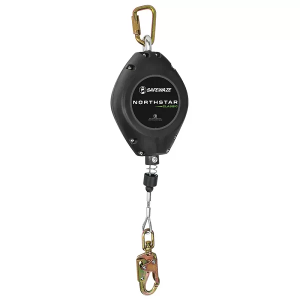 The Northstar Classic Cable Self Retracting Lifelines are designed with specialized impact resistant housing and non-corrosive components. This durable SRL also features an enhanced swivel top for greater mobility, load indicating snap hook and fast-acting braking system.