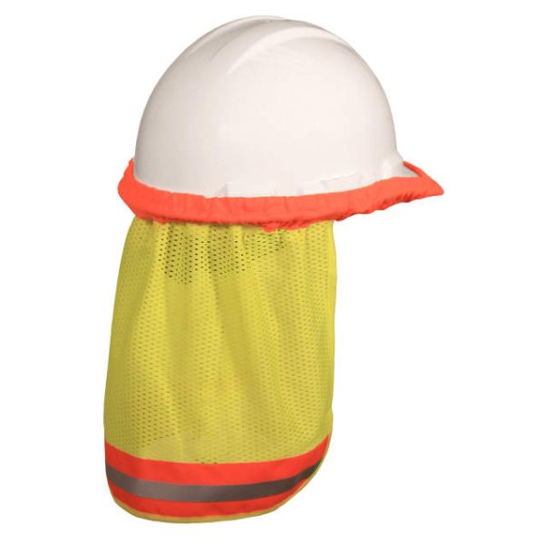The Radians SE Treated Hi-Vis Neck Shade is a lightweight cooling device that has a universal fit for both cap style and full brim hard hats. It protects the neck by shading from harmful UV rays, while offering additional visibility. Meets ASTM D6413.