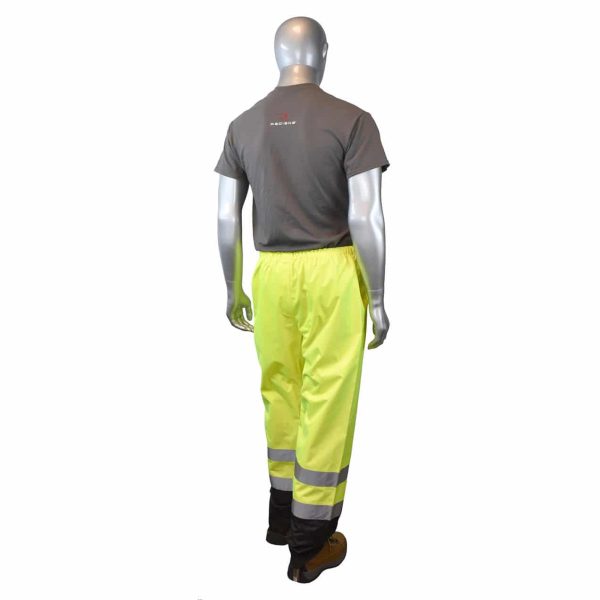 Radians SP41 Class E Sealed Waterproof Safety Pants are hi-vis durable waterproof pants. 300 denier yellow oxford polyester upper portion for visibility and darker lower portion to hide dirt. Elastic waist band with slash pockets for easy access to pants. Class E stripe configuration. CLASS E PANTS + CLASS 2 VEST = CLASS 3 ENSEMBLE