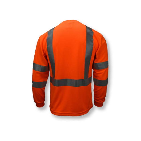 Radians ST21 Class 3 Long Sleeve High Visibility Safety T-Shirt is made with Max-Dri™ which is an arid Birdseye Moisture Wicking Mesh allowing for maximum breathability, without compromising durability. The stripes are adhered by heat transfer rather than sewn on, making the safety shirt wear much more like a regular T-shirt. The wicking properties improve hot weather comfort making it feel much cooler. The front pocket does not include reflective material to allow for corporate imprints.