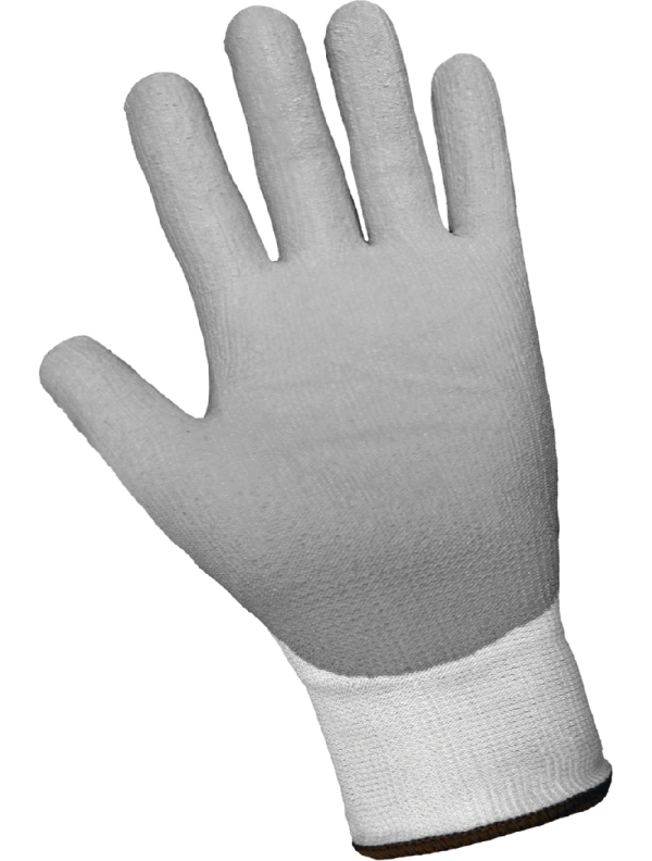 Featuring a seamless white Tuffalene® UHMWPE shell, this cut-resistant glove is palm dipped with gray polyurethane. It offers excellent grip, lightweight comfort, and dexterity. This glove is appropriate for use in an ESD Protected Area.