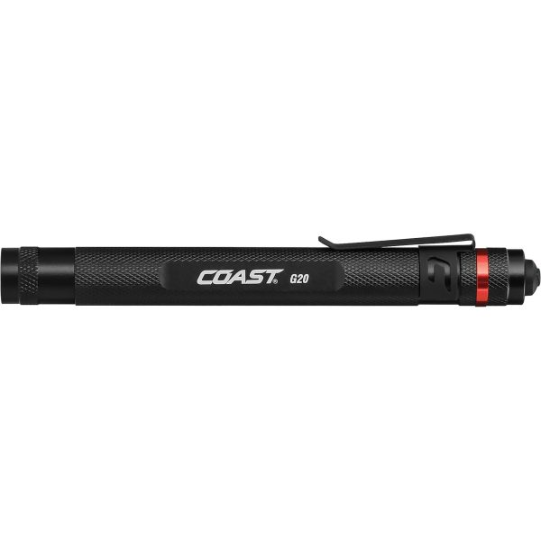 Stay ready to spot the details. The G20 penlight features COAST’s legendary Inspection Beam, prized for its perfect circle of detail-revealing, anti-glare light. No wire, connection, or leak can hide. With a beam length of 21 meters (68 feet) and run time of 11 hours, this single-mode sidekick features a steel pocket clip and weighs less than 3 ounces for easy carry—and it comes in five color options: black, red, blue, green, and orange. Built from top-grade aluminum for durability over the long run, the G20 penlight is IP54 stormproof and dust resistant, primed for the job. Built with COAST Alkaline-Dual Power technology, the G20 penlight is powered by 2 x AAA alkaline batteries and can also operate using a COAST ZITHION-X™ rechargeable battery (sold separately) for added convenience and cost savings.