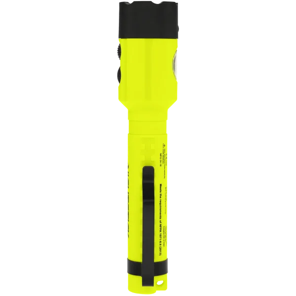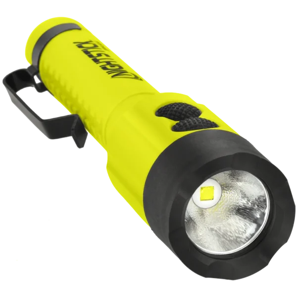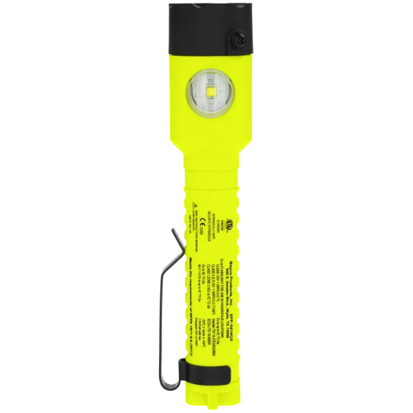 This Intrinsically Safe (cETLus, UKCA, ATEX Zone 0 and IECEx) Dual-Light LED flashlight offers peak performance in hazardous work environments. Use the top-mounted buttons to trigger the flashlights focused distance lighting and the floodlights expansive close-up illumination. Maximize the safety and functionality benefits by simultaneously activating both lights in Dual-Light Mode. Features easy-to-use top-mounted switches, durable glass-filled nylon polymer housing, an integrated magnet on base, and a reversible pocket clip. Certified cETLus, ATEX, and IECEx Intrinsically Safe LED. Includes Flashlight / Floodlight / Dual-Light Modes (flashlight and floodlight for maximum safety and utility). Meets requirements for NFPA-1971-8.6 (2018). Rated IP-67 dustproof/waterproof. Powered by 2 AA (not included).