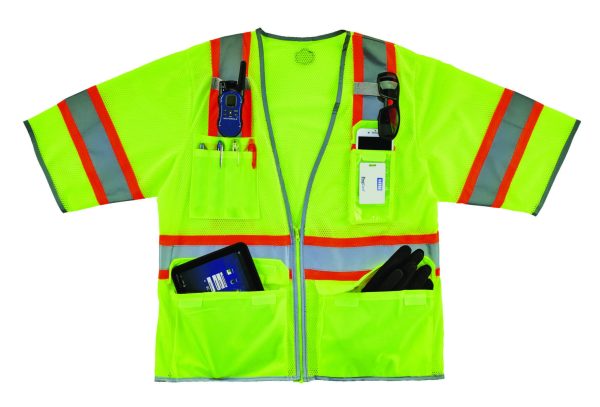 The GloWear 8346Z Two-Tone Hi-Vis Class 3 Surveyor Vest is loaded with six pockets and built with durable, yet breathable ANSI/ISEA compliant polyester mesh providing maximum visibility for any job in both daylight and nighttime conditions.